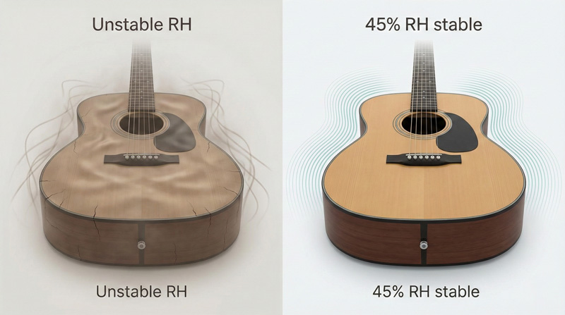 Controlled humidity helps preserve attack, sustain and tuning feel.